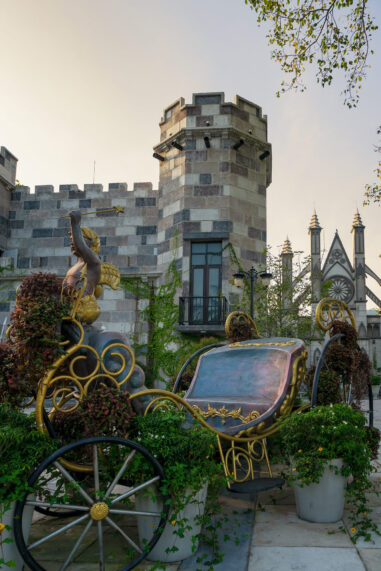 ตัวปราสาทตั้งตระหง่านอยู่พร้อมด้วยอัศวินที่รอต้อนรับอยู่ที่ด้านหน้าประตูทางเข้า ไม่ว่าจะถ่ายกลางวันหรือกลางคืนก็สวยงามและให้แสงสีที่จะกลายเป็นความทรงจำดีๆตราบชั่วนิรันดร์