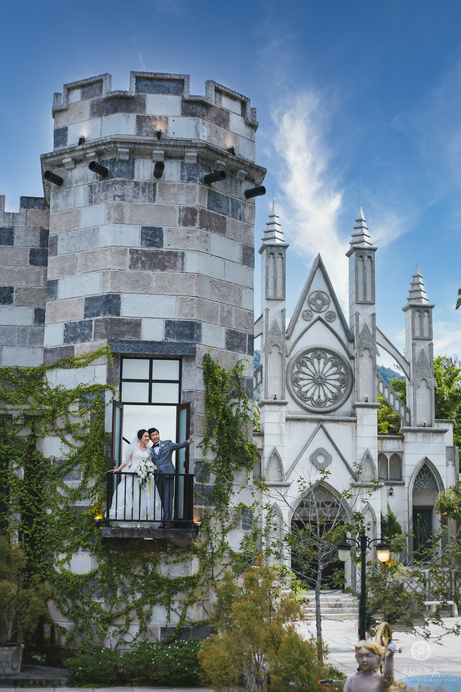 ตัวปราสาทด้านหน้าสุด เป็นสถานที่ที่ถือเป็นเอกลักษณ์ของ Punwa Studio เนรมิตฉากให้คู่บ่าวสาวรู้สึกราวกับเป็นเจ้าหญิงและเจ้าชายที่อยู่ในเทพนิยายปรัมปรา